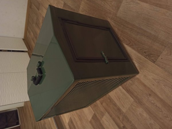 Prodám box na psa,původně na Jagdteriéra. Box je vyroben z 1,3mm silného plechu a ošetřen práškovou barvou. Box je velmi bytelný čemuž odpovídá i jeho váha 10,5kg a výšce 38cm, délce 51cm, a šířce 36cm. Vnitřní kobereček lze vytáhnout a dát vlastní. Pro více info volejte.Cena: 2500 kč