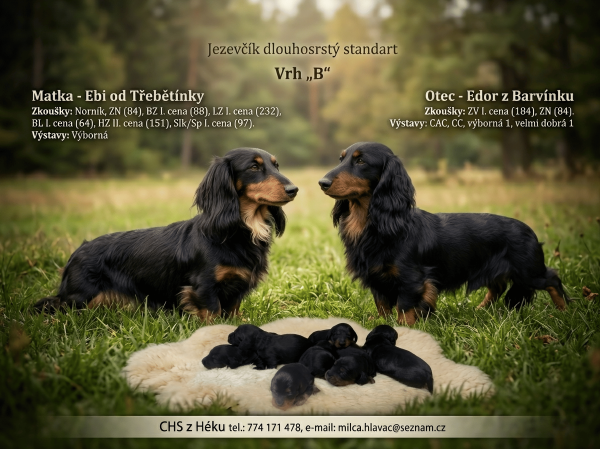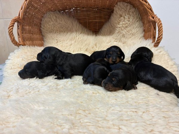 Typ: NorníciČtyři fenečky dlouhosrstého jezevčíka vyhlíží své budoucí majitele.