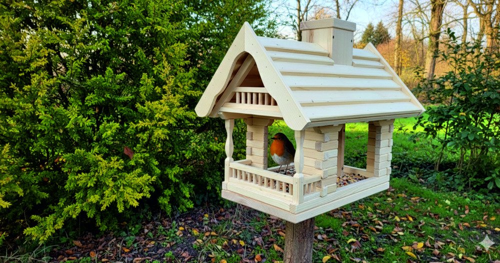 Odolnost a Kvalita: Konstrukce z masivního dřeva a robustní střecha zajišťují ptáčkům bezpečné a suché prostředí i v nejnáročnějším počasí.